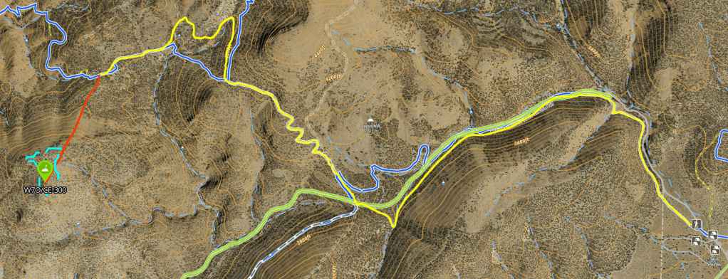 Most of this ride was on the Cole Loop Trail #100, a 25 mile equestrian route that has been adopted by mountain bikers and hikers. Since it was developed and is maintained by the equestrians, they have the right of way. Several year back, the Forest Service built a very nice trail head just across Skull Hollow Rd from the Skull Hollow Campground, a popular spot for visitors/climbers to Smith Rock due to its proximity to the park. While the state park has some walk-in tent camping, this campground has space for vans/campers/rvs and pit toilets. Additionally, there are numerous disperse camping spots along Skull Hollow Rd. up to and including several spots at the junction of Cole Loop/Grey Butte and the Grey Butte access road.