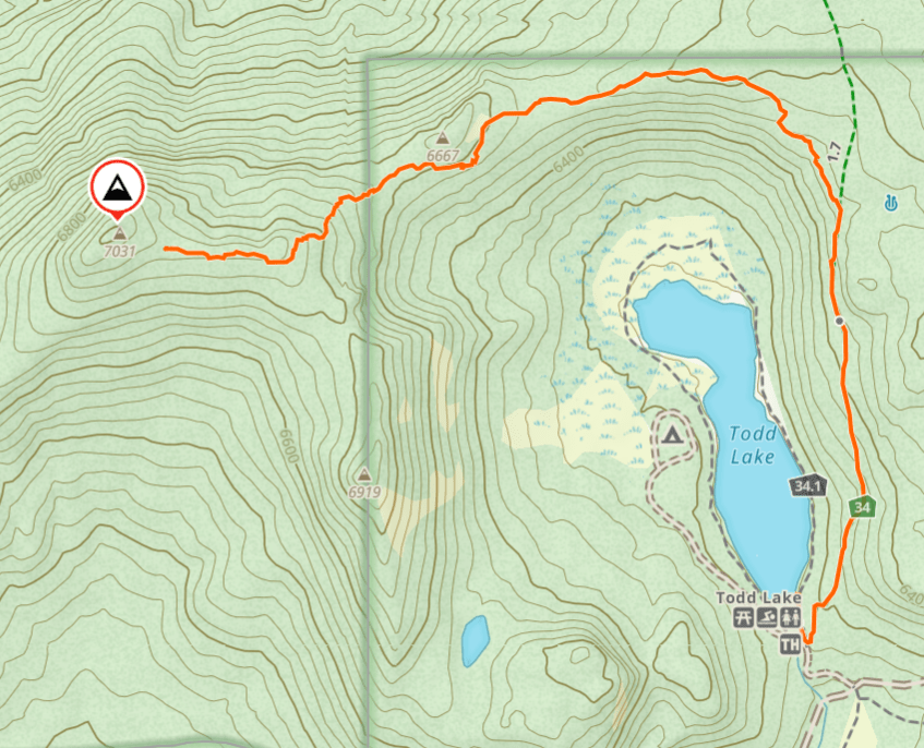 W7O/CM-152 is a numbered peak just to the West of Todd Lake, accessible via the Todd Lake Trail #34 then following the ridge line after about .6 miles on the trail. The off trail walk is about 1.4 miles making this about a 4 mile RT hike. Route finding once off trail is pretty straight forward but having a GPS device would be highly advisable. There is a false summit that could draw you in, but it can easily be traversed low through some pretty mountain meadows.