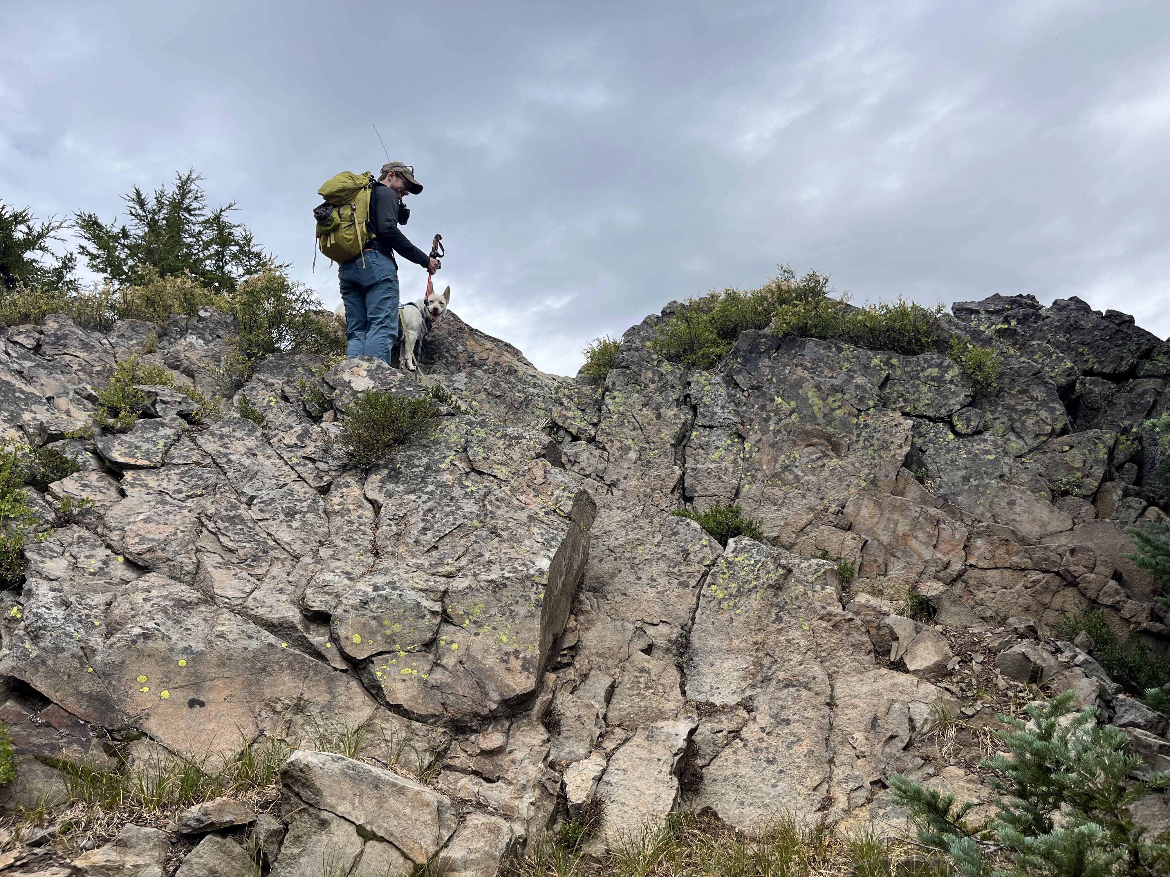 While most of the hike is quite easy going, there is a small rock formation that we found a way around by following an old game trail that wrapped around to the north.