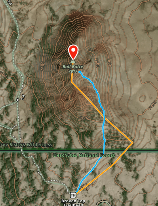 FS-370/380 are both unmaintained roads and high clearance/4WD vehicles are highly recommended. FS-370 from Todd Lake to the intersection with FS-380 is passable in a less capable vehicle but FS-380 is very rough. I have driven both in the past in a front wheel drive Honda Element and we did see several passenger cars in the parking area but you have been fairly warned. There is not an established trail and the approach involves some steep and loose cinder slopes. I would classify this as an intermediate to advanced hike, requiring good fitness and route finding skills. Ball Butte has fantastic 360 degree views of Broken Top, Tam McCarthur rim, Paulina Peak, Bend and eastward, Mt Bachelor, Tumalo and South Sister. A Central Cascade Wilderness Permit and NW Forest Pass are required for this hike. The Wilderness permits are available from Recreation.gov for $1 per person.