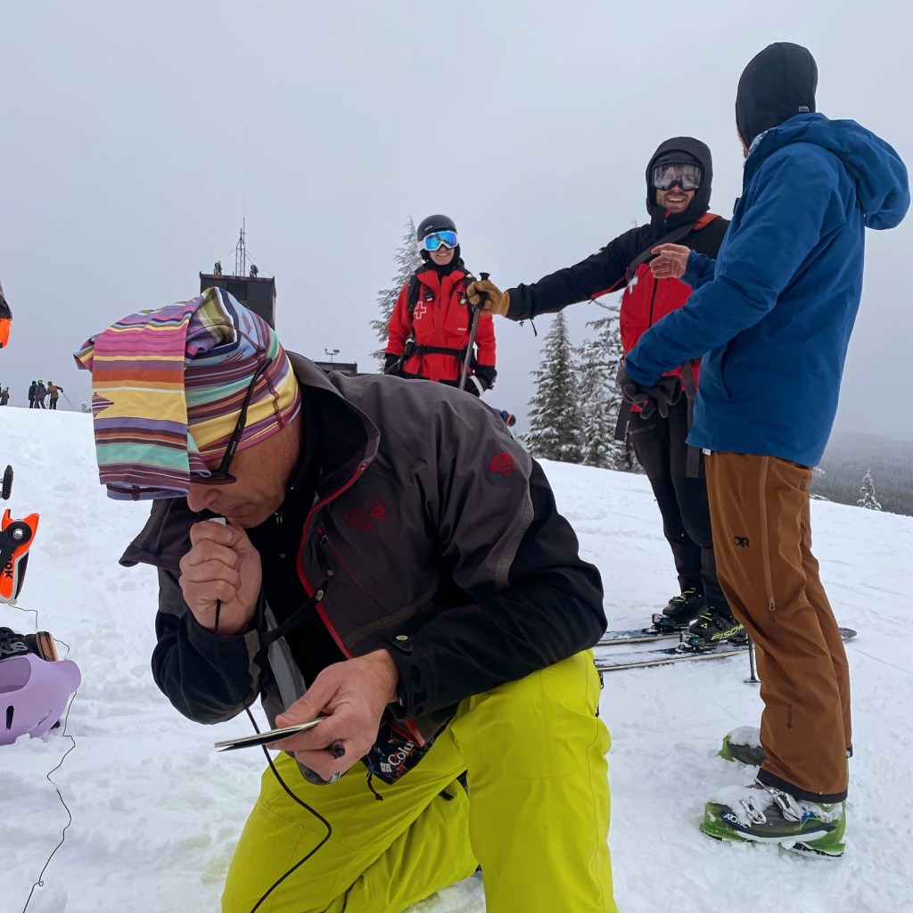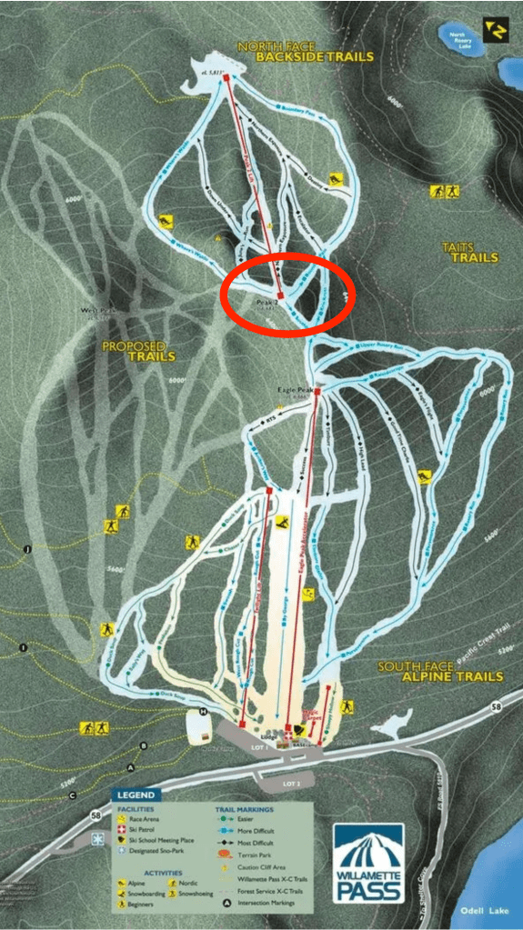 We arrived mid-morning on a Saturday in Early April and tried to discretely package our rigs in fanny packs and chest harnesses because Willamette Pass disallows backpacks on the lifts. See Tim’s video for the full effect.