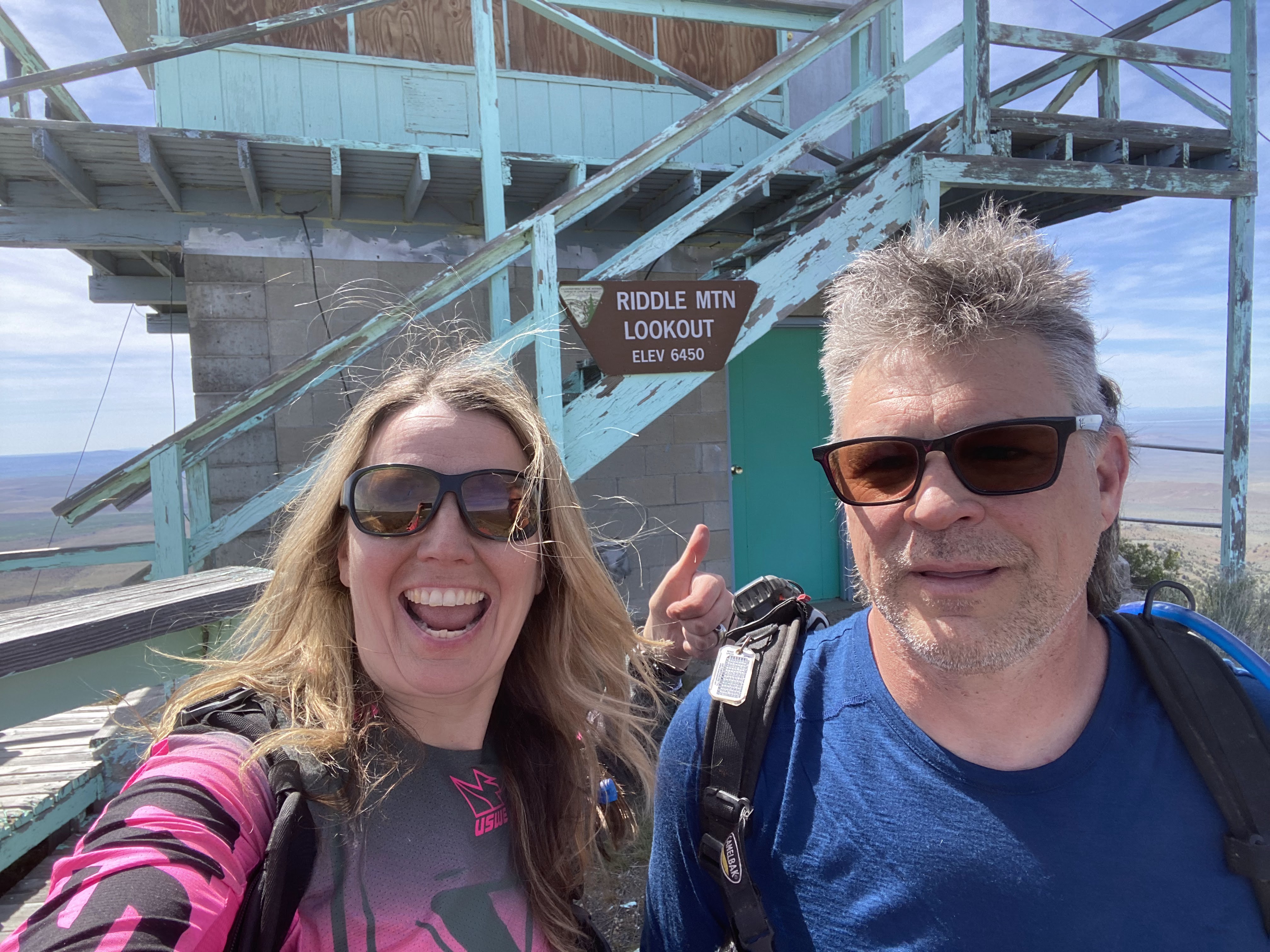 Riddle Mountain is very, very remote. Its about 50 mile South East of Burns, OR along mostly good paved roads. The access road is intimidating due to its remoteness but in very good condition once you get over the lack of tracks leading up the side of the hill. Most of the tower cab was boarded up and I didn’t get around too the West side but Randi said one of the windows was exposed and it looked as if it hadn’t been used in a while. There is a vault toilet, but of course it had nothing left inside. The views are indescribable. I think I said, “if I was a wild mustang, this is where I would live” when looking out to the South over the spring green rolling hills that end down towards the Alvord Desert. Not for the faint of heart but definitely worth the effort. Plan on bringing your HF gear but VHF did bring us the win.