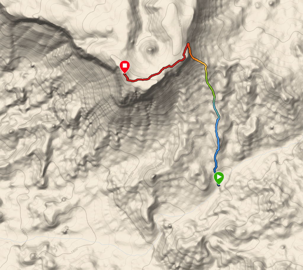 The first mile up is challenging but very doable. 1300 of the 1400 feet of climbing is in the first mile. The trail is easy to follow single track with cairn markers in the less obvious spots. The last .8 miles is flat and easy. The scramble section is quite short and easy if you have decent fitness.